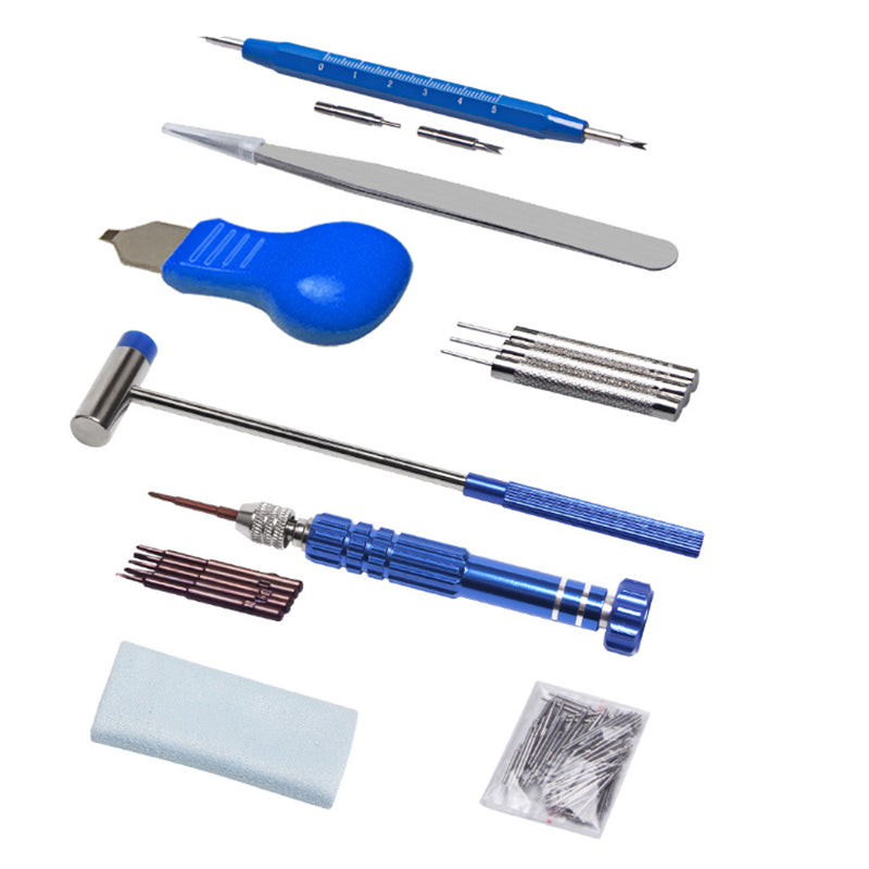 Precision watch repair kit, suit for opening watch backs, watchband adjustment, changing watch batteries, gaskets, adjusting bands, and more.