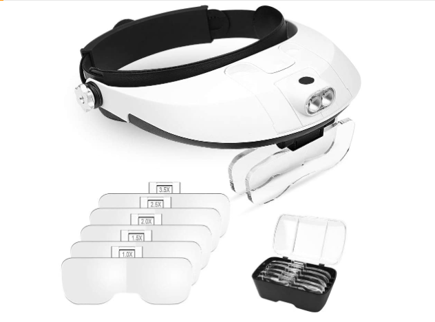5 interchangeable lenses with 1.0X, 1.5X, 2.0X, 2.5X, 3.5X magnification, Multi lenses(1x to 6x) to meet your different tasks. It's for professional jewelry loupe, watch repair, electricians, Sewing, Crafts, Hobbies, Repair or as general reading aid.