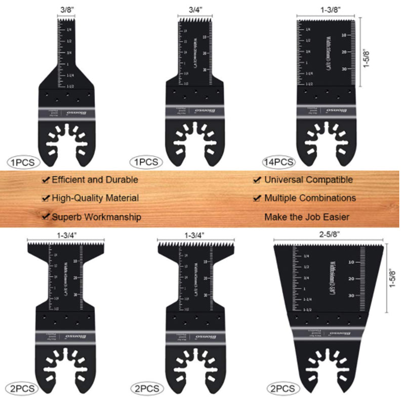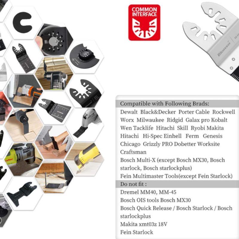 Compatibility: With a universal interface system, it is perfectly compatible with more than 95% of the oscillating tools on the market.