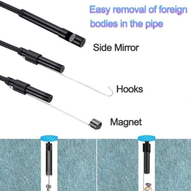 Borescope camera with light comes with 5.5mm lens and 2 m rigid cable, is compact,easy to bend and keep in shape. It is useful in narrow, hard-to-reach areas, such as air conditioners, ventilation shafts, motor valves, toilets, etc.