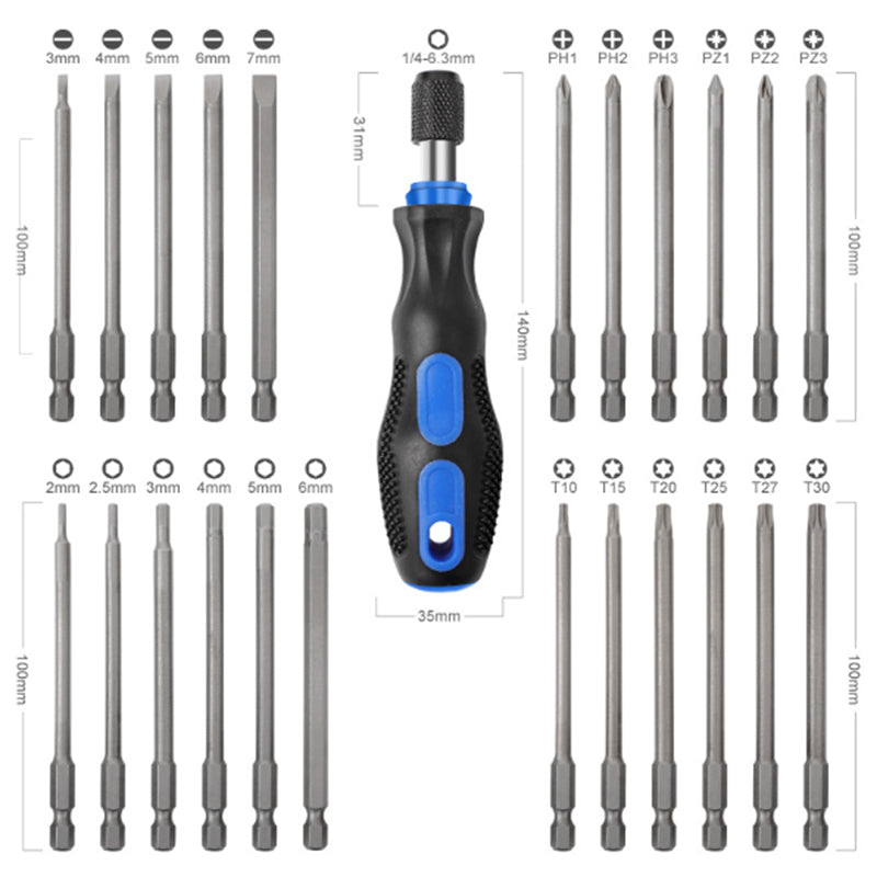 23 high-strength CR-V screwdriver bits to meet all your needs.