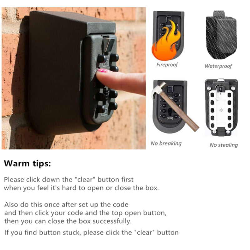 This wall mounted key safe is the solution with its weather resistant place to keep a spare key for your home or car. Ideal for emergency entry, home healthcare access, vacation homes, storing spare keys etc