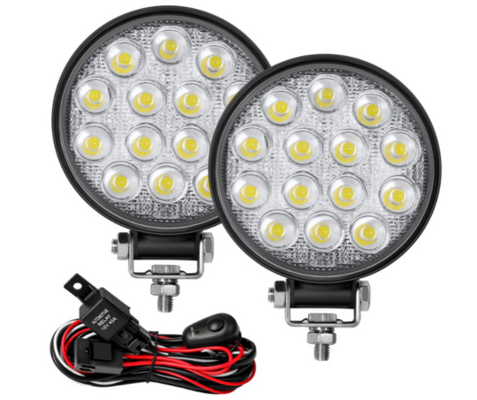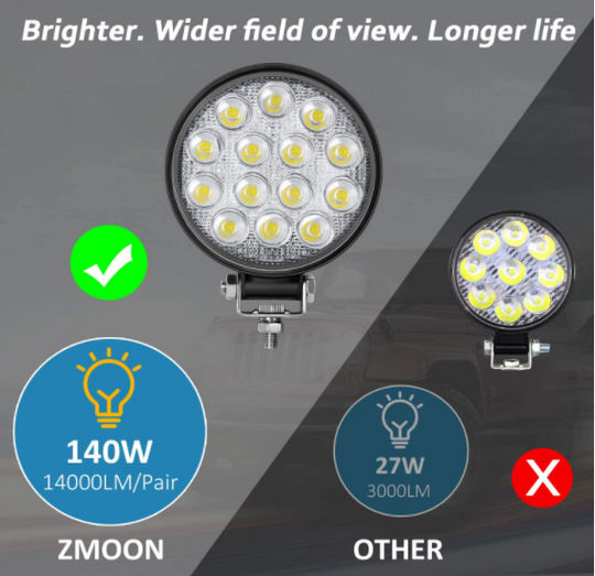 28 Led Light Bar Chips/Pair : 4.5in Round led light bar uses advanced 28 LED chips provide 14000lm,6000k /pairs super bright white light, the brightness is far more than similar products of 6 chips, 9 chips....Regular price $39.99 -