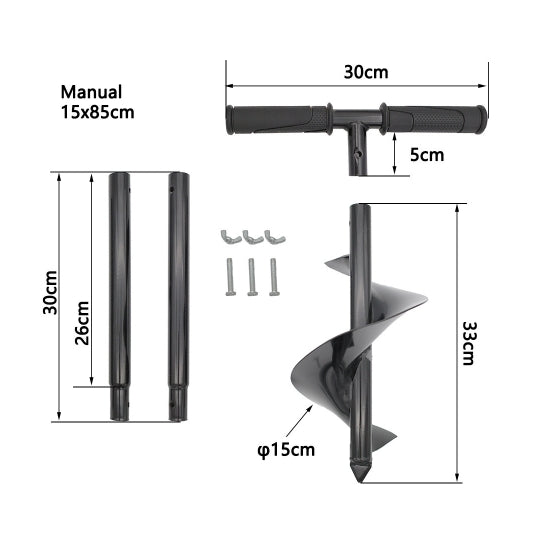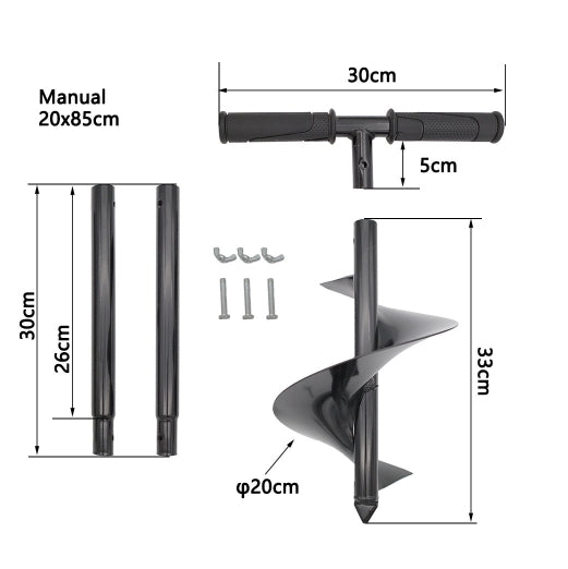 This post hole digger is hand operated, more safe and eco-friendly than battery-powered augers, can be used for most soils and clay.