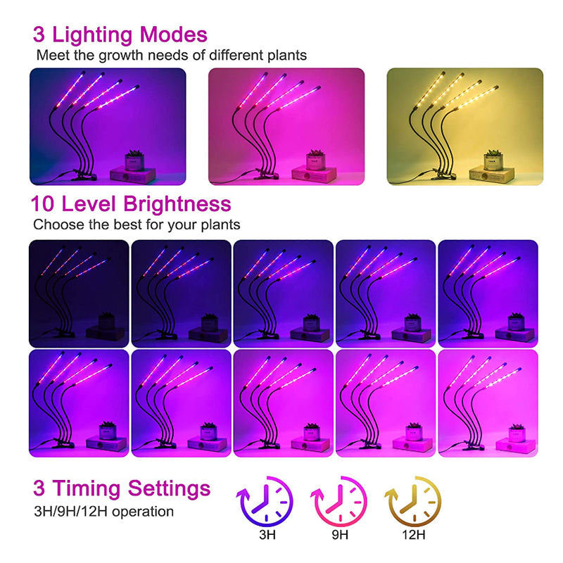 Grow Lights for Indoor Plants, Full Spectrum Led Plant Light with Timer Clip on