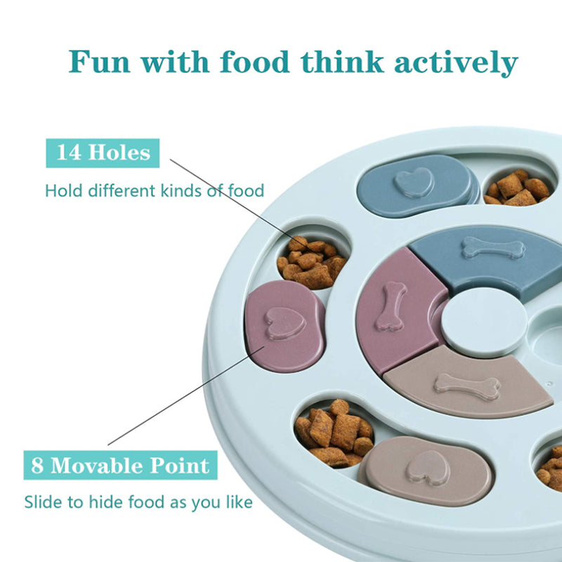 This is a fun interactive puppy puzzle toy, which can easily become the closest companion and toy for your puppies and cats, and will release pressure for dogs. Find food by sliding parts to improve eating pleasure and IQ.