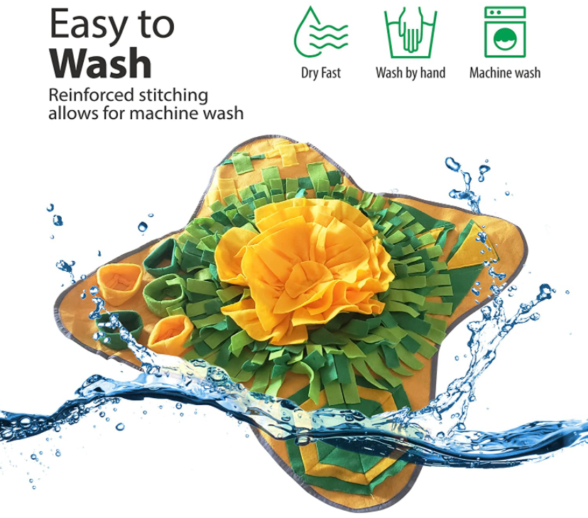 Food puzzles for dogs, perfect for all sized dogs including snuffle mat for dogs small. Dog stimulation toys. This dog food puzzle works as mental stimulation for dogs. Also functions as dog puzzles for large dogs