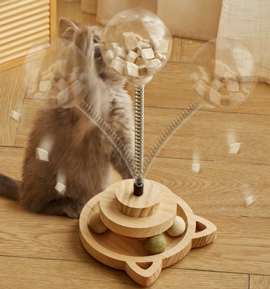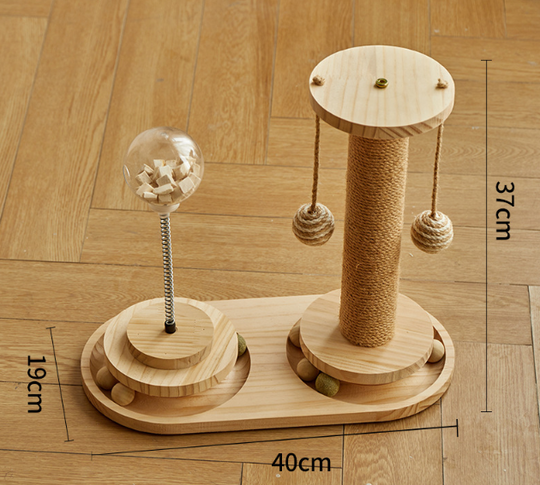 4-in-1 cat scratching posts includes 2 premium sisal ropes, interactive treat dispenser with 2 different sizes, 4 rotating wooden beads on tracks, and 2 hanging feathered sisal ball for energy stimulation. Following clear instructions and utilizing...Regular price $29.99 -