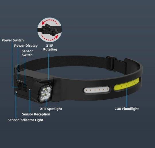Rechargeable headlamp - LED headlamp with a 230° Wide Beam and 315°rotatable