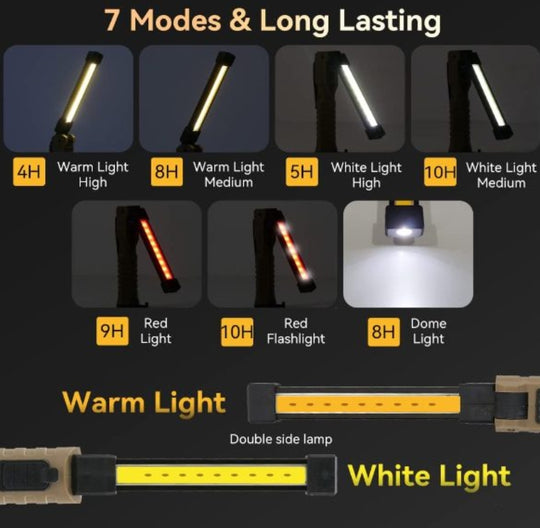 This LED Work Light has seven modes (Dome Light, White Light High/Medium, Warm Light High/Medium, Red Light/Flashing) and Cordless Work Light also designed double-sided light, one side is white light, the other side is a warm...Regular price $19.99 -