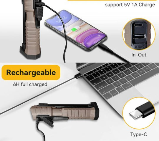 Rechargeable LED Work Light Automotive Foldable USB Portable Flashlight