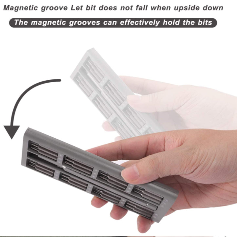 Magnetic Design: The bits will not scatter when turned upside down. The handle has a built-in strong magnet for easy insertion and removal, easy to hold screws