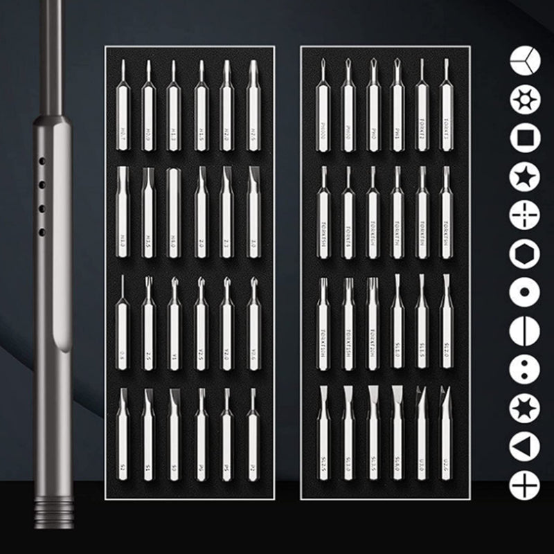 Suitable for Different Screw Head Types: Include an aluminium handle and 48 screwdriver bits: Phillips, Flathead, Torx, Triangle, Hexagon, SIM Eject Bit