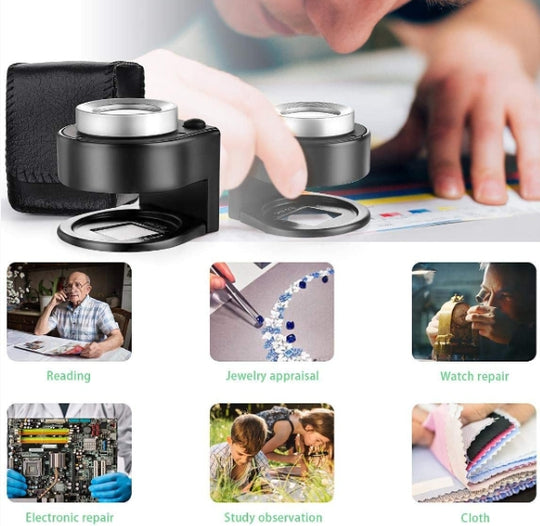 MAGNIFYING GLASSES WITH 5 SETS OF LENS :5 interchangeable lenses with 1.0X, 1.5X, 2.0X, 2.5X, 3.5X magnification ,professional Jewelers LoupeLIGHTED MAGNIFYING GLASSES: Magnifying glass with light ,the lamp with 2 LEDs is quite bright . No...Regular price $22.99 -