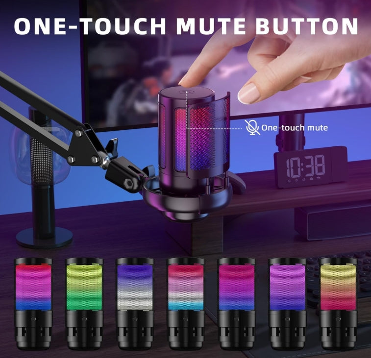 Gaming USB Microphone for PC,Podcast Microphone Kit for Streaming, Condenser Mic with Quick Mute