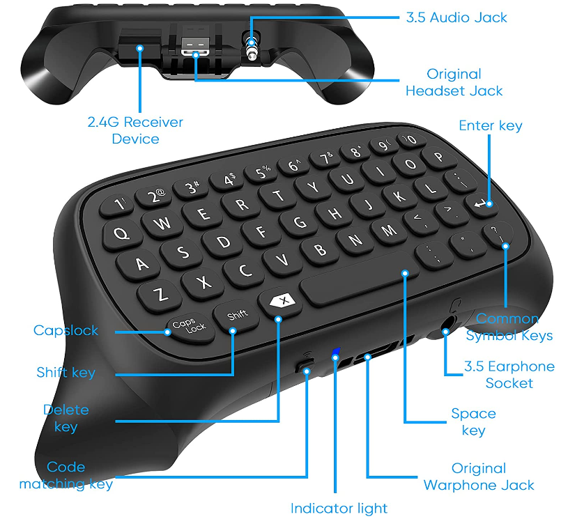 NO CHARGE REQUIRED - This keyboard adopts 2.4G protocol to transfer data, really a perfect combination of the controller and this keyboard. It can get power directly from the controller without an additional charging cable.