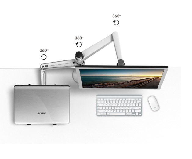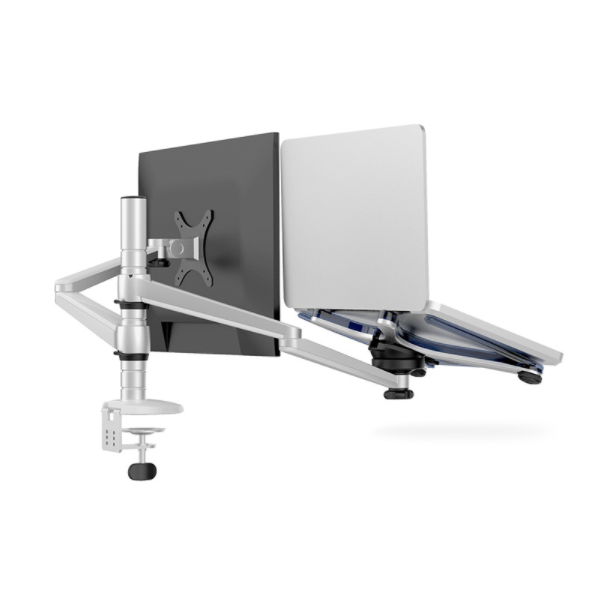 The screen can freely swivel 360 degree, and easily adjust the monitor and laptop to the most comfortable position, monitor mounting arm offers 145 degree tilt, the maximum extension length up to 52cm/20.5", reach the height of 56cm/21.8", Laptop mounting arm offers 60 degree tilt, the maximum height up to 56cm/21.8".