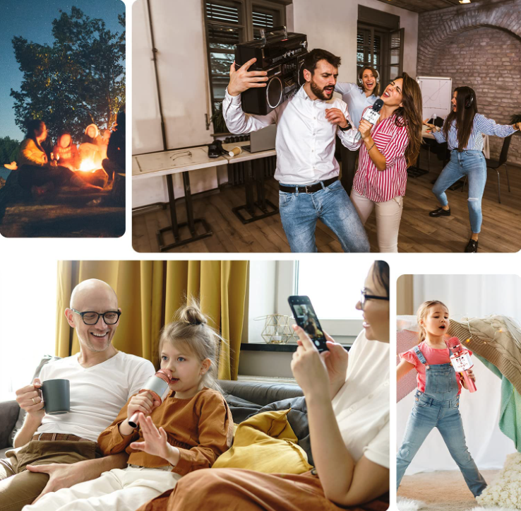 Karaoke Microphone--Wireless Bluetooth connection, singing karaoke anywhere anytime; Bluetooth speaker--open the mobile APP, you can play music; Loudspeaker--One key to turn on, you can amplify your voice without connecting anything; Recorder--recording growth and happy times; Radio model--As long as the surrounding signal is strong enough, the radio function can be activated at any time. Selfie shutter--record the beauty of the world together.