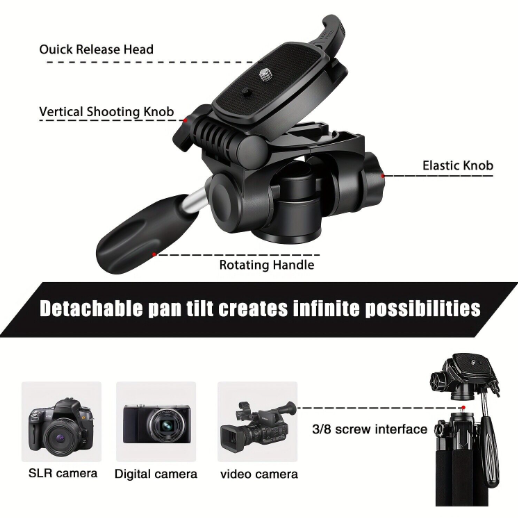 Detachable Head: The detachable head allows for easy switching between devices, making it compatible with both cameras and phones.