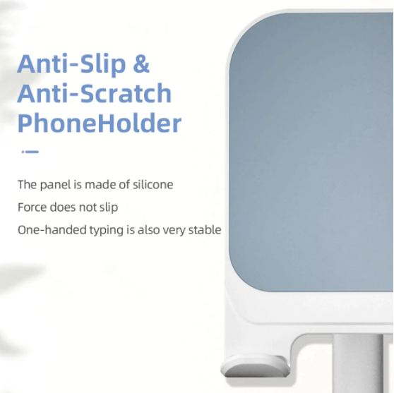 【Stable Base & Fully Protective Anti-slip Silicone Pad】This fully foldable desk cell phone stand holder equipped with a heavier base, and an aluminum alloy rod that makes a lower center gravity, so it’s stable enough to bear your phone even for iPad. Fully covered top silicone pads and metal weighted anti-slip base well protect your devices from scratches and sliding, easily tap the screen without worrying the phone will tip over or fall off.