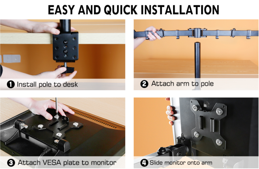 Easy Installation - Mounting your monitors is a simple process with detachable VESA bracket plates. We provide the necessary hardware and instructions for assembly.