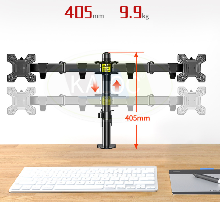 Fits 13" To 27" Screens - Dual monitor mount fitting two screens 13” to 27” in size and 22 lbs in weight each with VESA 75x75mm or 100x100mm backside mounting holes.