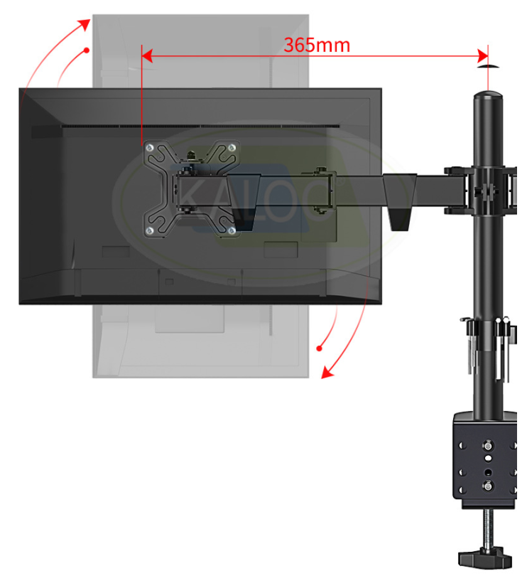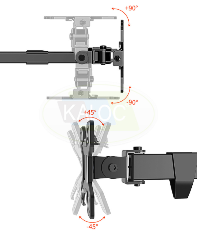 Articulation & Height Adjustment - Adjustable arm offers +90° to -90° tilt, 180° swivel, 360° rotation, and height adjustment along the center pole.