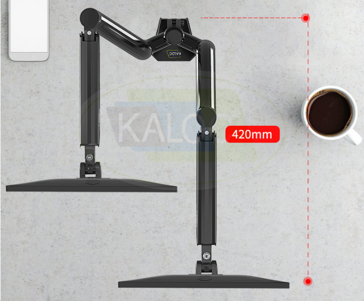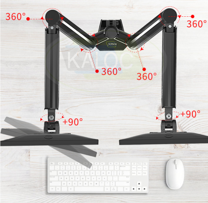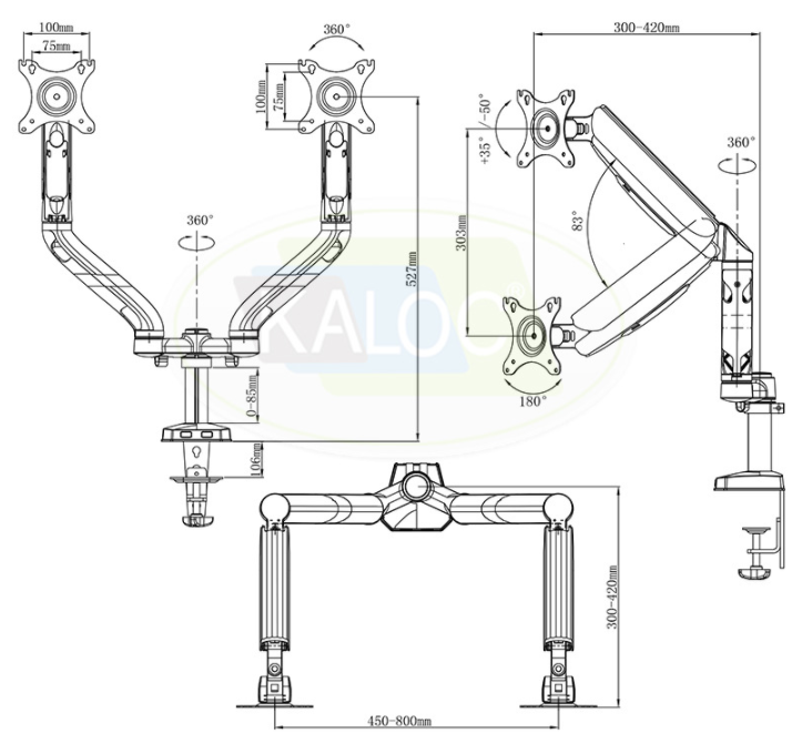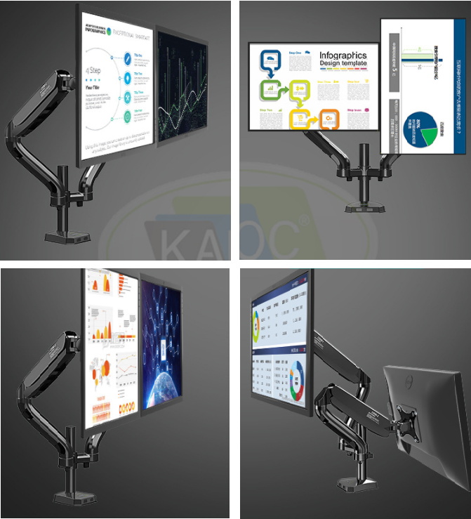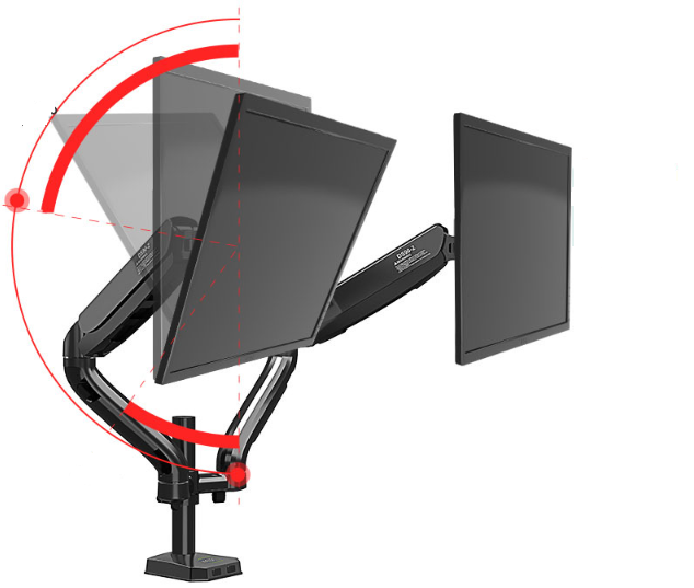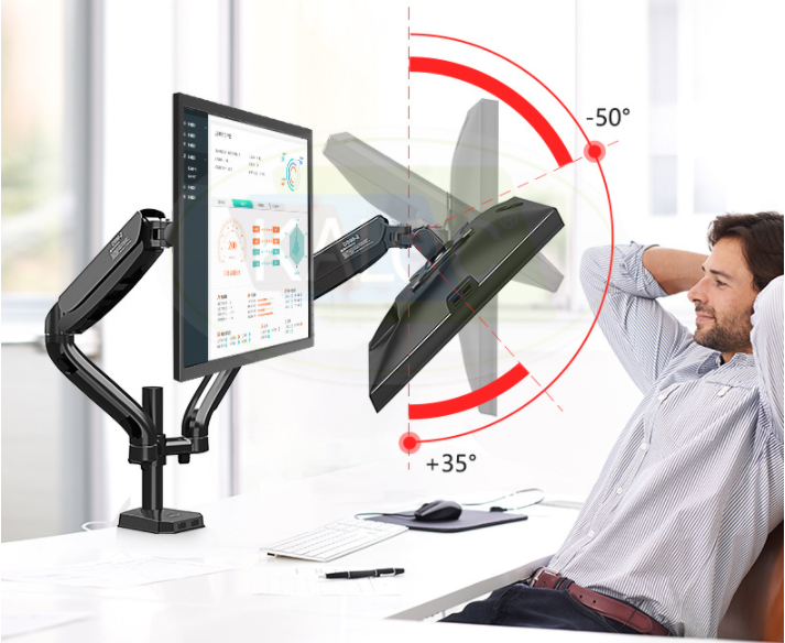 Have it Your Way - Our premium Dual Monitor Stand comes with a removable arm and spring system allowing you to perfectly position your screen. With the Dual Monitor Mount You will always have the right viewing angle for you, with 360° rotation. Also, for extra customization, the arm extends up to 420mm with a tilt range between -50 to +35 degrees