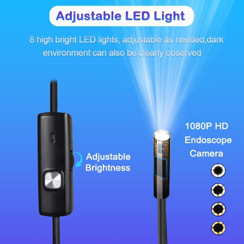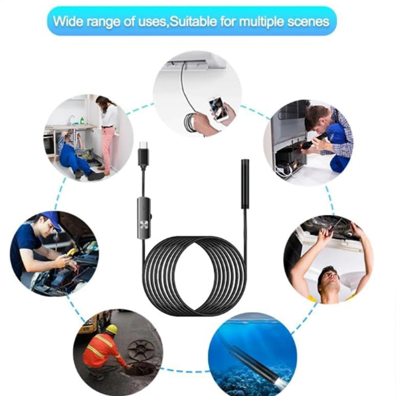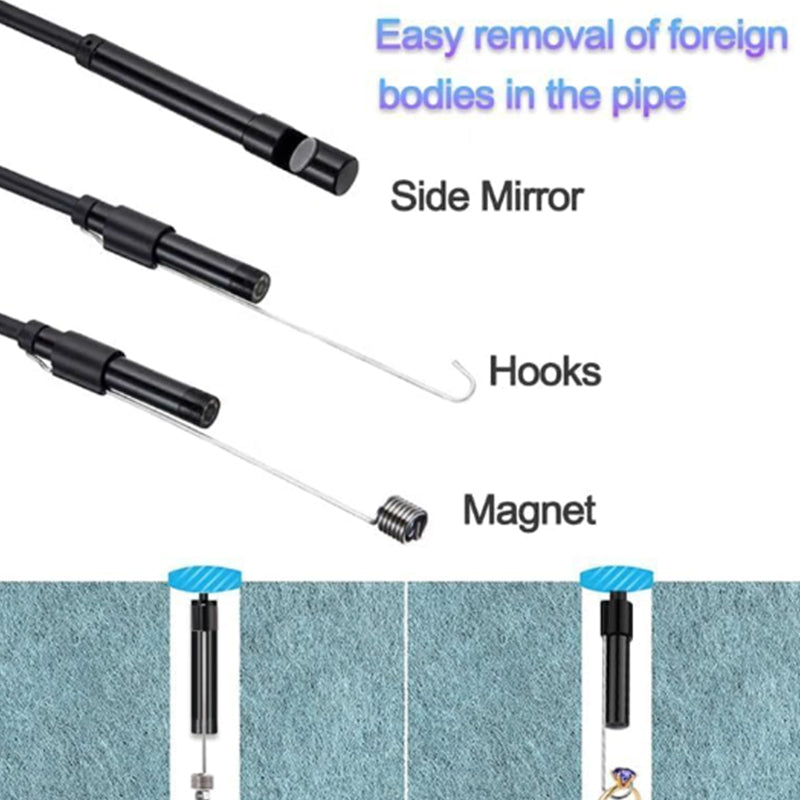 Borescope camera with light comes with 5.5 mm lens and 1 m rigid cable, is compact,easy to bend and keep in shape. It is useful in narrow, hard-to-reach areas, such as air conditioners, ventilation shafts, motor valves, toilets, etc.