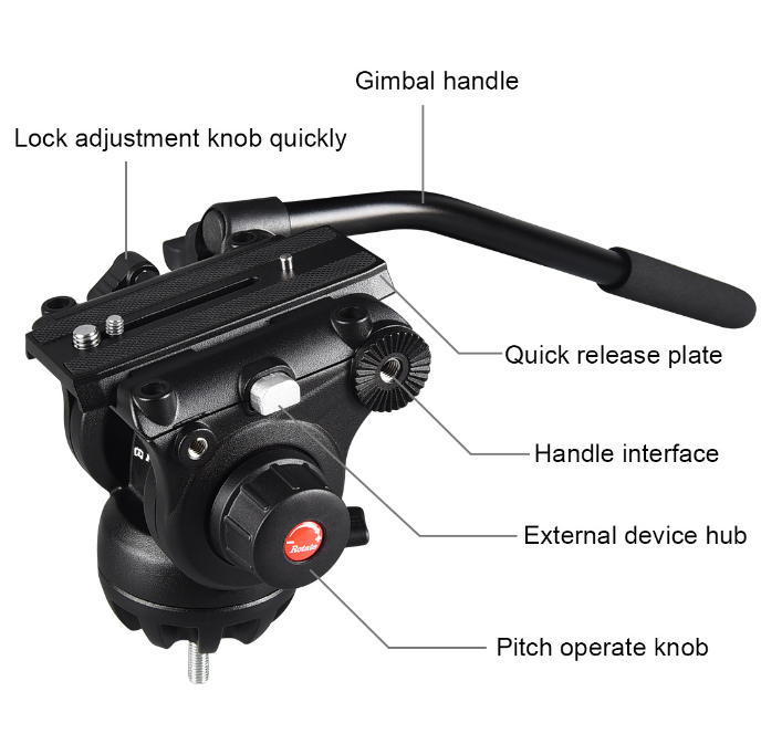 2. Fluid damping head system for smooth rotate and tilt for recording.