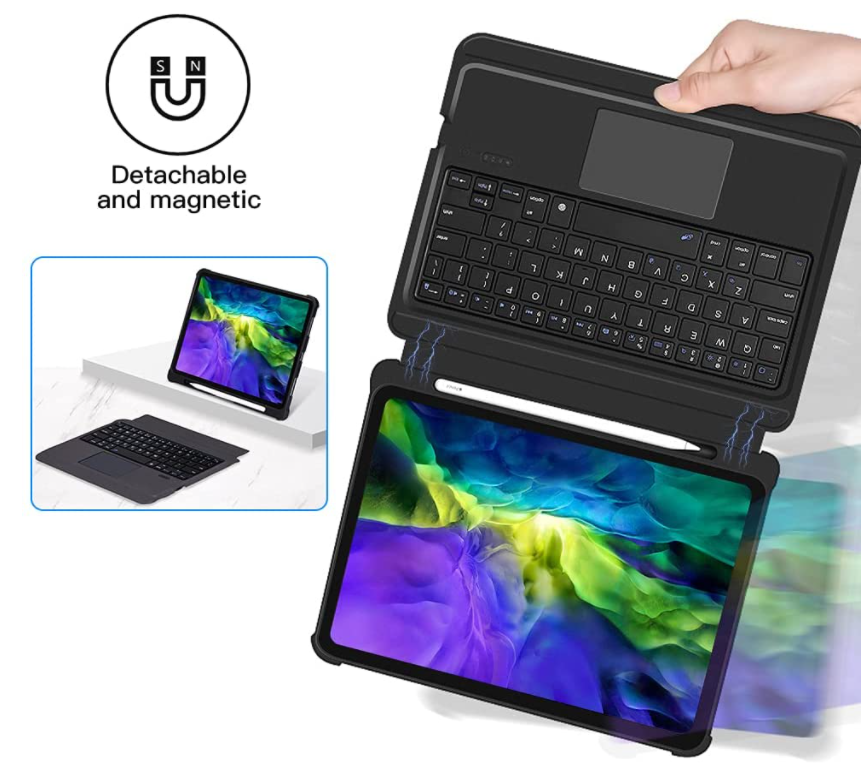 MAGNETICALLY DETACHABLE: No hinge, no crack. Enhanced magnet supports iPad Air 4 and iPad Pro 11 inch in versatile modes. You can take the keyboard away from the case, or simply set it back to turn your iPad Pro 11 to a laptop in seconds. It is for iPad Pro11 2018/2020. Please check your iPad model before purchase.