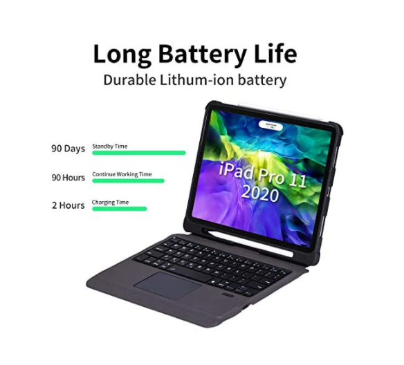 FLAWLESS CONNECTIVITY: Advanced Broadcom Bluetooth 5.0 built-in, its speed is as twice as others’, delivering you an unbeatable reliable connection between your iPad Pro 11 & the keyboard in 10 meters in the open Pro. Make you enjoy the superior typing without any lagging. Precisive trackpad (for iOS 14 or above) creates easy scrolling, navigating and more.