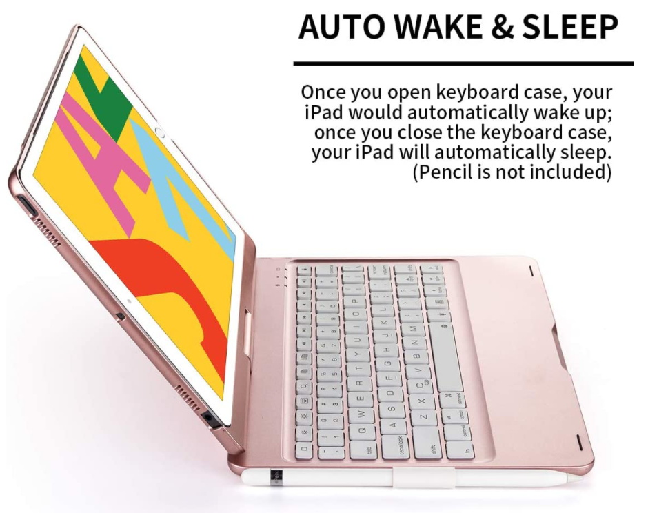 AUTO WAKE & SLEEP -The hardshell cover folds back to act as a stand and triggers the automatic sleep and wake function of your iPad, so it comes to life when you open the keyboard case cover. The keyboard is reasonably well-spaced with concave keys and it enables to access all ports and buttons easily. This protective case will ensure your iPad stays damage-free in the face of drops, knocks, or spills.