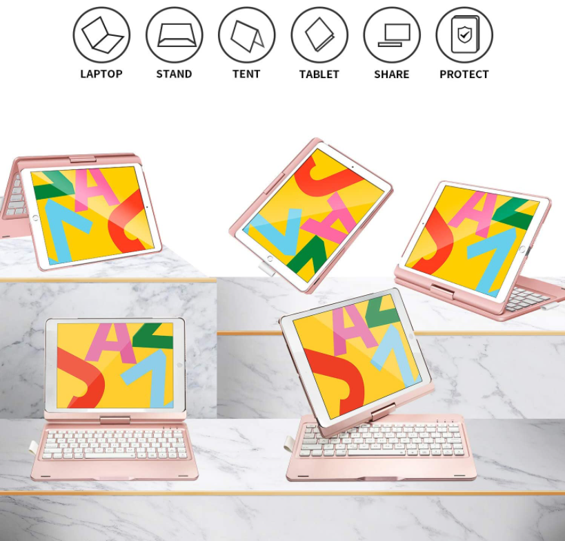 This slim and lightweight keyboard case will turn the iPad into a powerful laptop any time you’d want it. You can display your work presentation watch your favourite show or read a new book while you enjoy your iPad a little more even when you’re out and about!