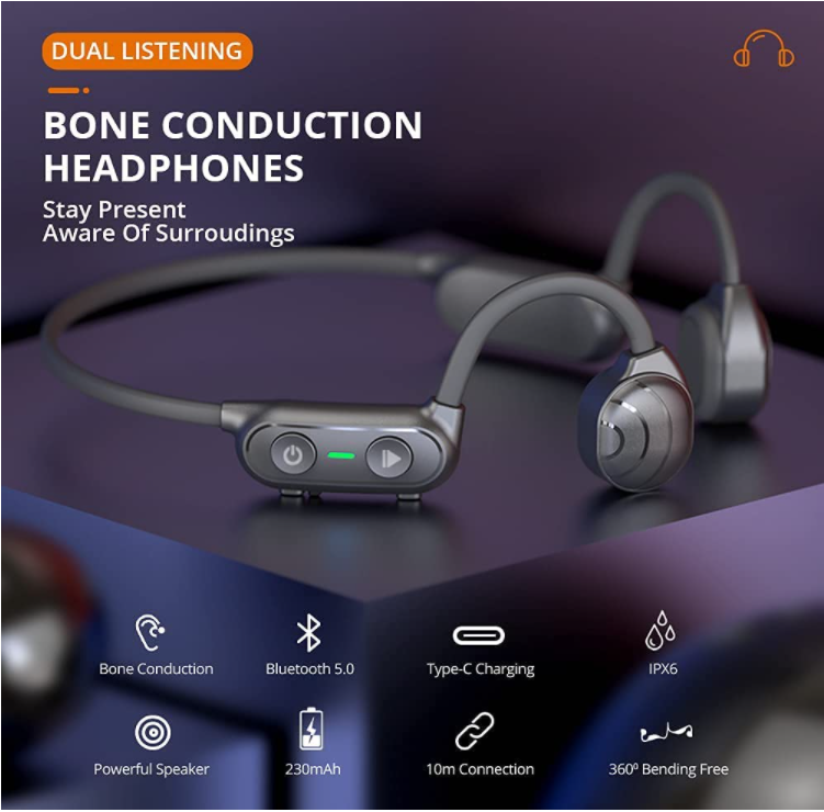 [Keep Awareness of Surroundings] - Bone-conduction headphones & Open ear design makes you hear your surroundings while listening to music or audiobooks. Safer during running or cycling outdoor