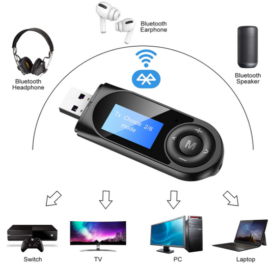 Bluetooth Transmitter Receiver 2-in-1 Visual Bluetooth 5.0 Audio Adapter LCD
