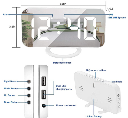 DIGITAL CLOCK LARGE DISPLAY -- 6.6 inches large LED screen with large numbers make it very easy to read the time. You can also use our mirror digital clock as a mirror, its operation is very...Regular price $35.99