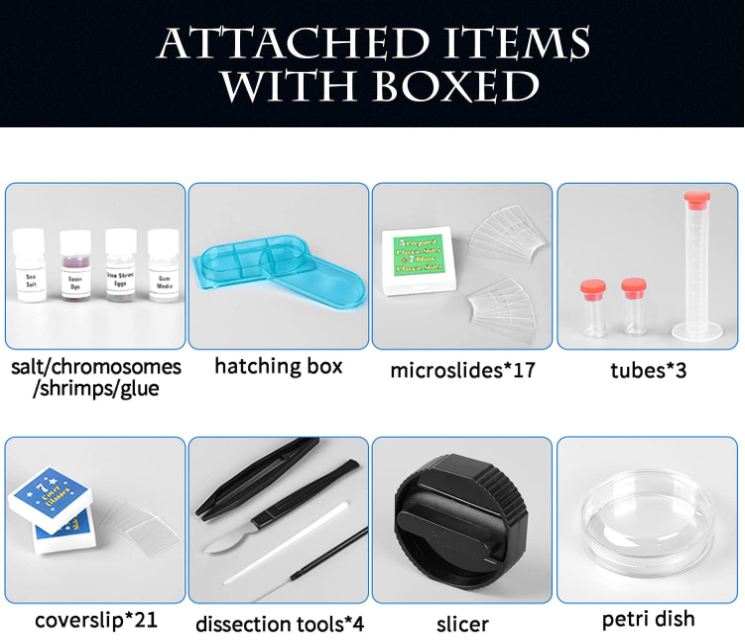 Complete accessories: Our science microscope kit contains 28-pcs accessories, prepared plastic slides and blank slides, petri dish, collection bottles, coverslip, dissection tools, lens wiper, phone adapter, slicer etc. Help you explore the micro world more easily.
