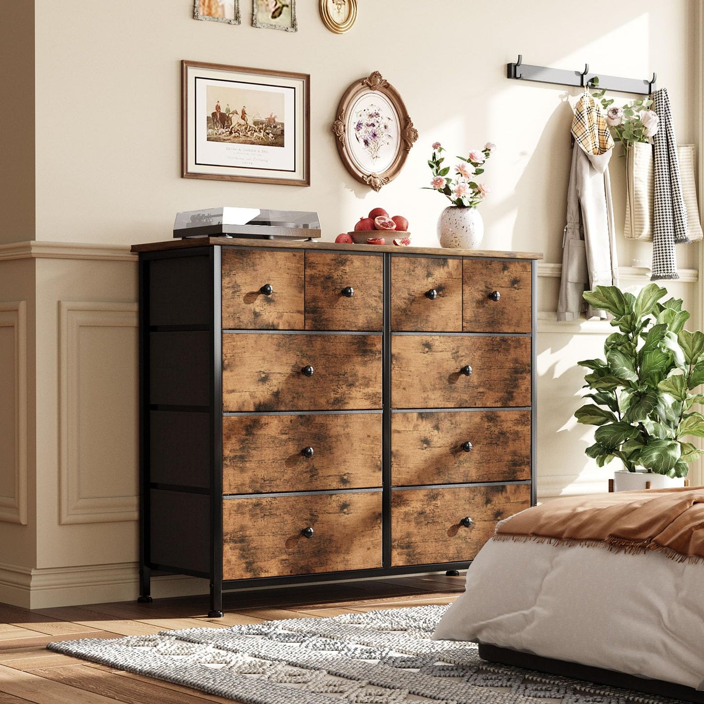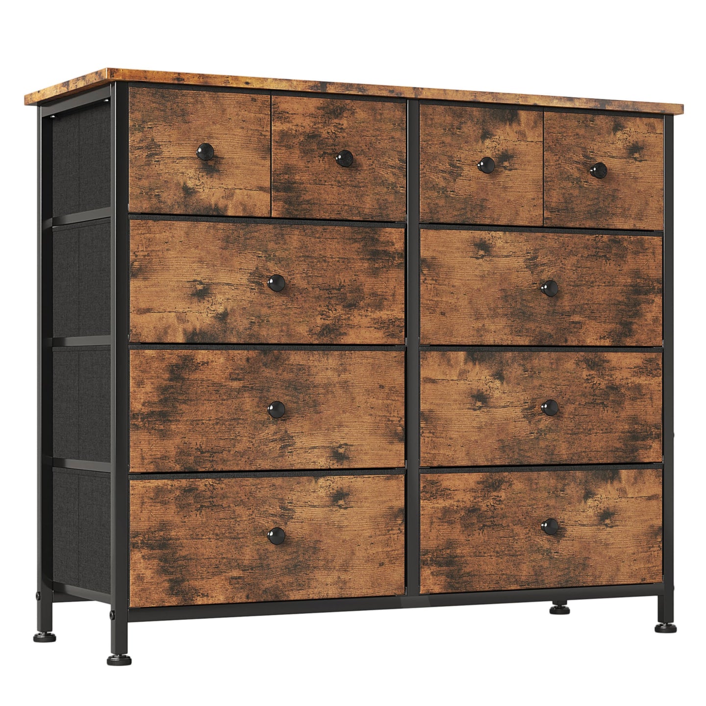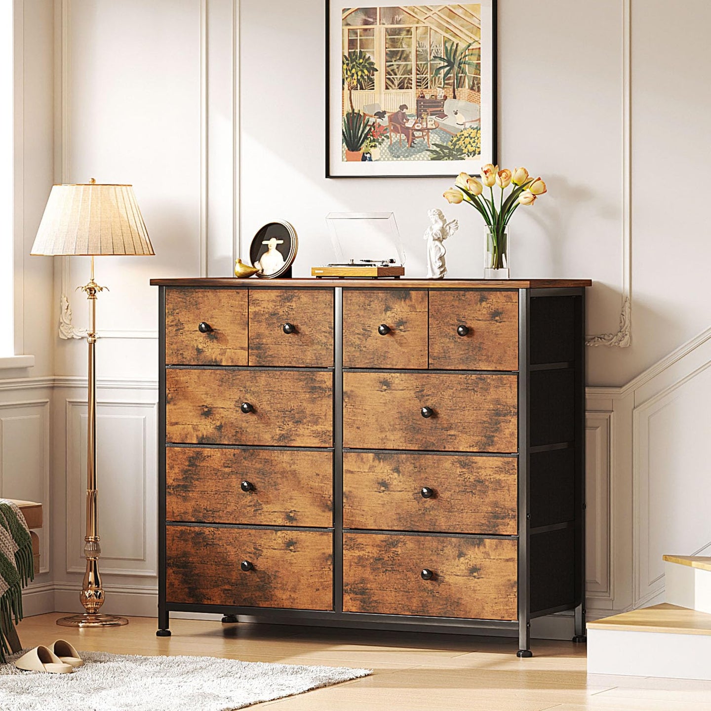 The tall 10 drawers dresser are made of sturdy metal frame and durable MDF waterproof tabletop. The 10 removable drawers with easy-to-pull handles. The strong steel frame enhances product stability and load capacity.
