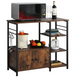 The standing baker's rack is composed of high-quality P2 MDF boards and a black metal frame. The metal frame and antique-colored table top have a great load-bearing capacity and ensure stability and durability.