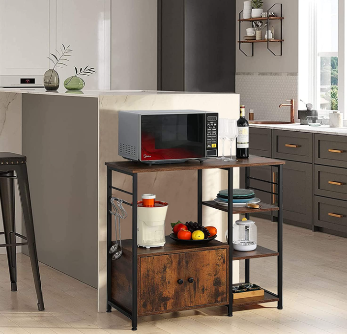 The kitchen shelf has high on utility, it not only as microwave stand with storage, also as bookcase, bathroom cabinet, storage shelf for living room, bedroom, study, children room, office, pantry.