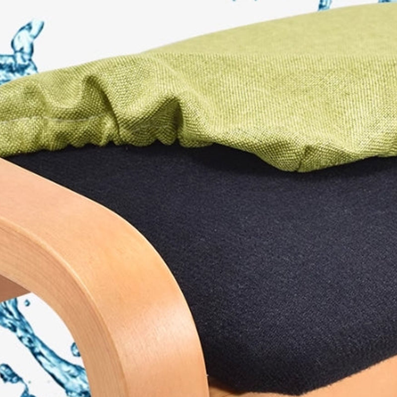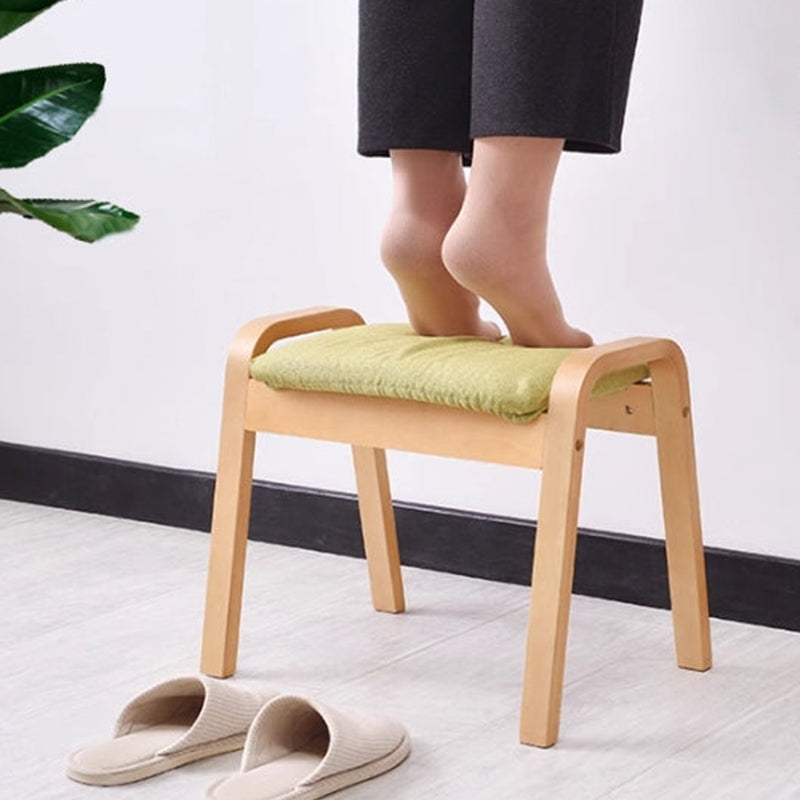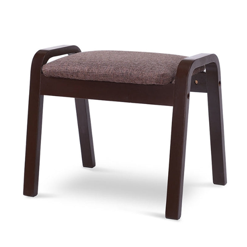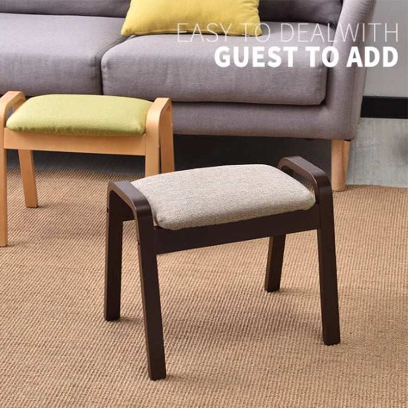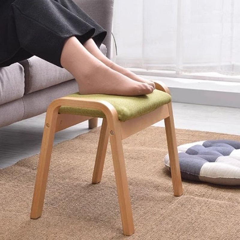 The stool is supported by solid wood legs, and the seat is padded with flame retardant sponge