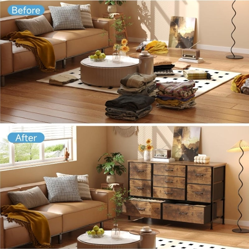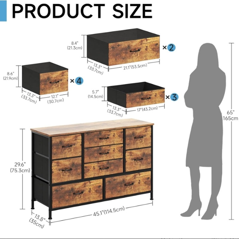 • This 9-drawer high-wide canvas cabinet provides sufficient storage space, suitable for storing clothes, toys, books, office supplies and other items. Each drawer can be used independently, making it easy to sort and organize, making your room more tidy and orderly.