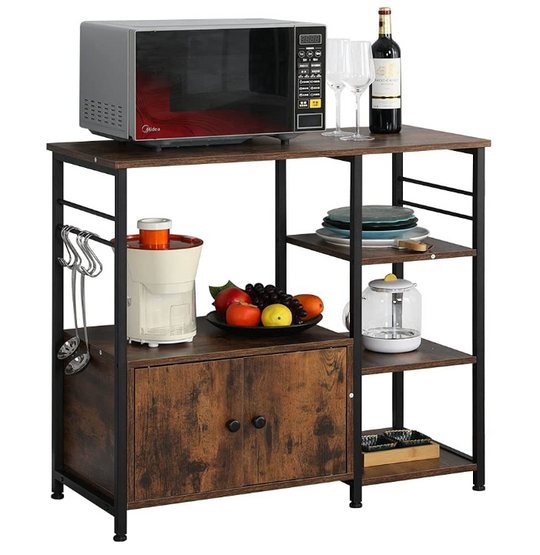 Kitchen Baker's Rack 4-Tier Industrial Microwave Oven Stand with Storage 8 hooks