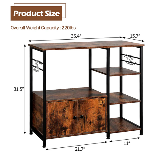 It measures 31.5''H x 35.4''W x 15.7''D, the kitchen storage rack with 4 shelves,2-door and 8 Hooks. Can well accommodate microwave ovens, dishes and other items to make your kitchen tidy. The kitchen shelf has high...Regular price $189.99 -