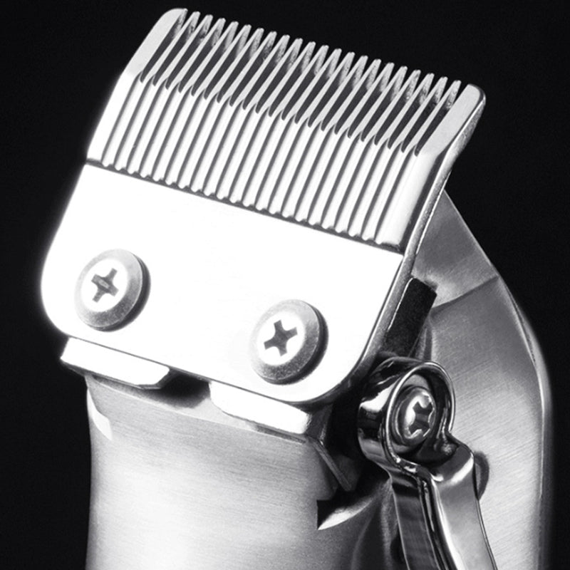 Our hair clipper set is equipped with a heavy-duty motor, which trims hair easily and efficiently, ensuring a perfect cutting experience. The metal body is designed with a more professional look and better grip . It's the best partner of master!