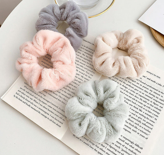 4pcs Faux Fur Scrunchies Furry Hair Rubber Bands for Women Set A