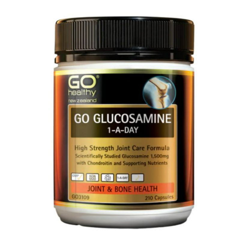 GO GLUCOSAMINE 1-A-DAY is a complete, high strength joint care formula in a convenient 1-A-Day capsule dose. Each capsule contains a full dose of scientifically studied Glucosamine Sulfate 1,500mg plus Chondroitin and potent supporting nutrients. Ginger and Turmeric support comfort of joint movement, while Celery supports healthy, normal uric acid levels. Vitamin D has been added to support bone health. Copper, Manganese and Proline have been shown to provide extra support for joint, cartilage and bone health.