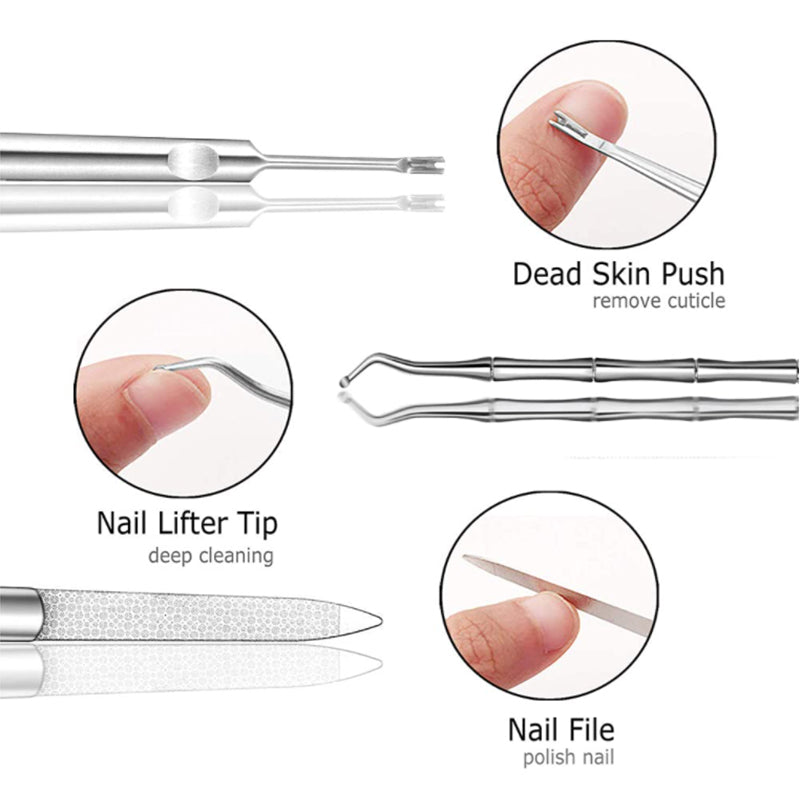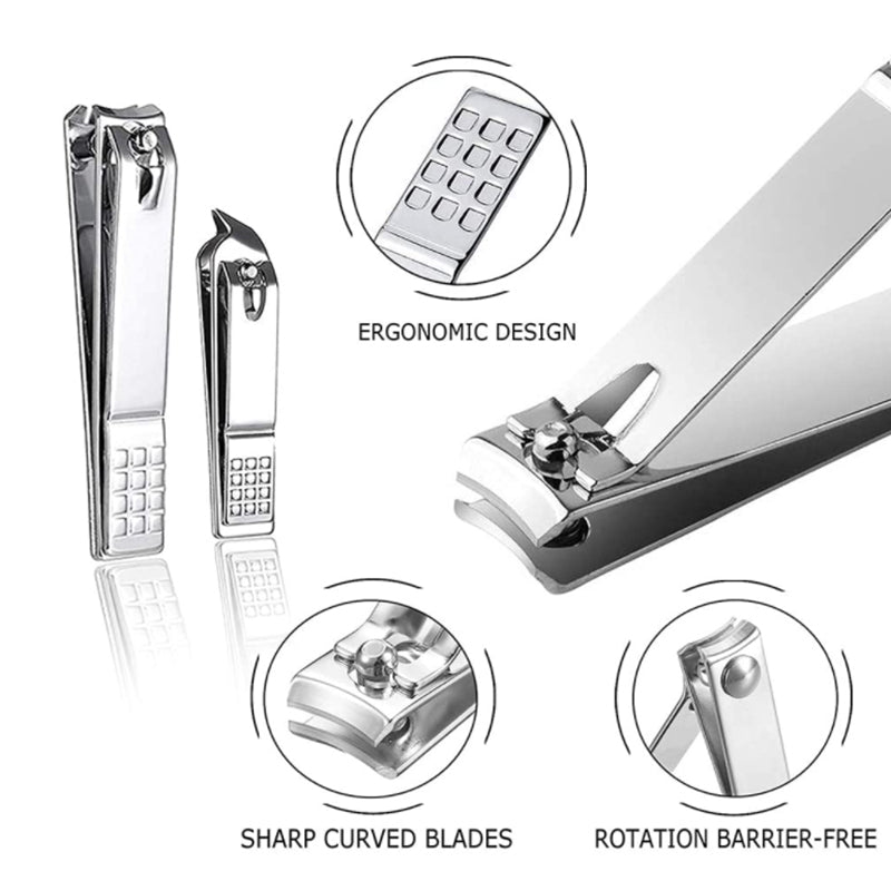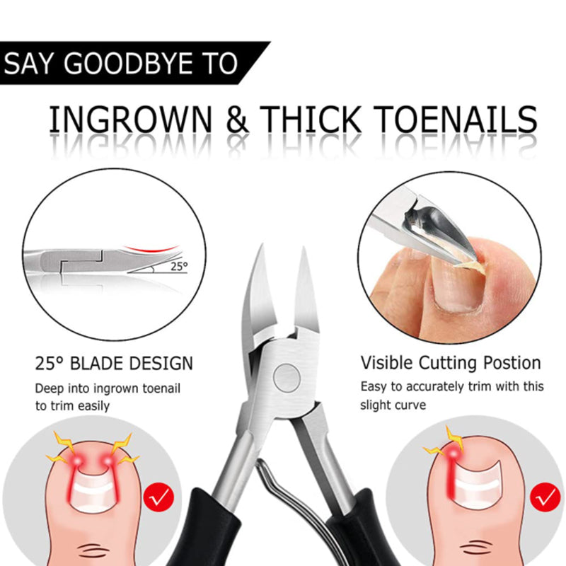 1× Podiatrist Toenail Clipper + 1×Toe Nail Clipper + 1× Fingernail Clipper+ 1× Nail Polish File + 1×Nail Lifter Tip + 1×Death Skin Push + 1× Ingrown Toenail Corrector, Meet all your different nail trimmer needs, keeping your feet healthy without pain and nail fungus.