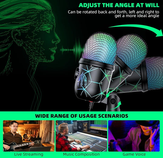 Gaming Microphone, USB PC Mic for Streaming, Podcasts, Recording, Condenser Computer Desktop Mic